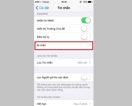 Số điện thoại bị chặn không thể gửi được tin nhắn cho bạn. Do đó, bạn cũng không thể đọc tin nhắn bị chặn trên iPhone như trên một số dòng máy Android.